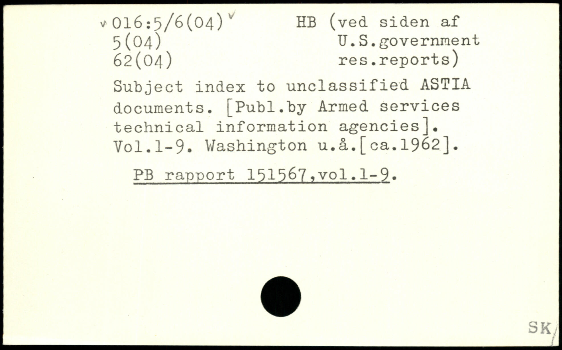ForsideBøgerSubject index to unclassified ASTIA documents.