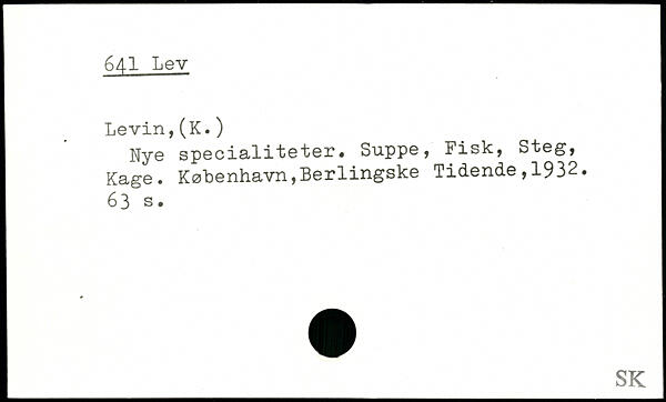Nye specialiteter. Suppe, Fisk, Steg, Kage.