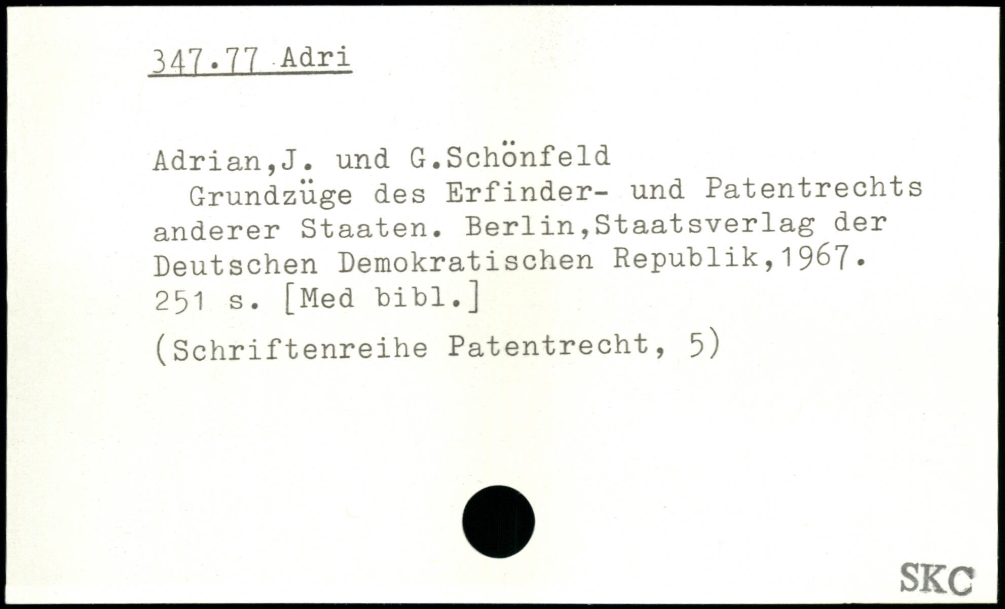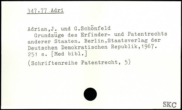 Grundzuge des Erfinder- und Patentrechts anderer Staaten. Berlin,Staatsverlag der Deutschen Demokratischen Republik,1967.
