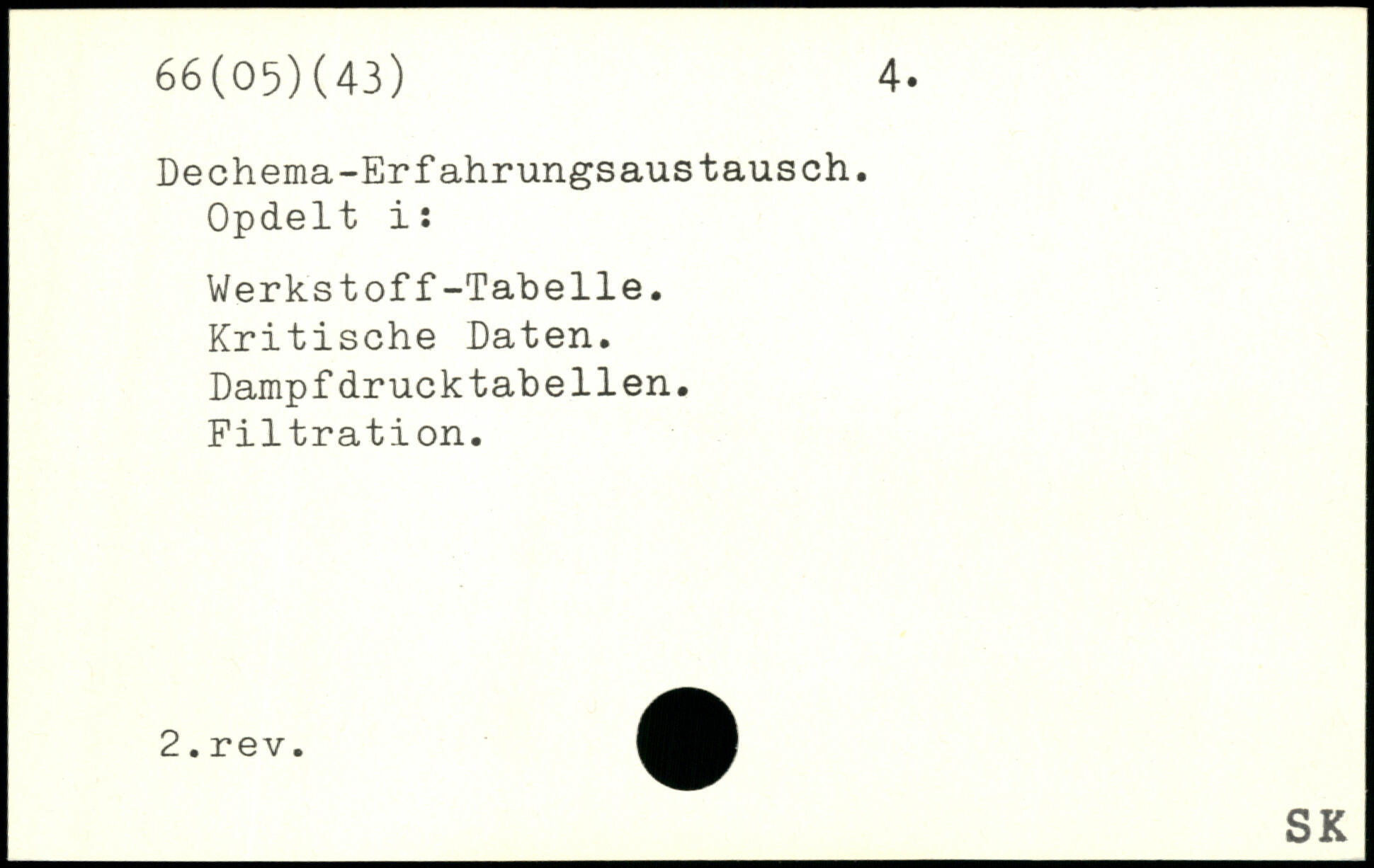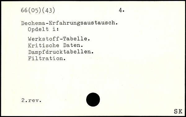 Opdelt i: Werkstoff-Tabelle. Kritische Daten. Dampfdrucktabeilen. Filtration.