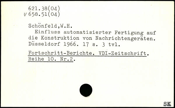 Einfluss automatisierter Fertigung auf die Konstruktion von Nachrichtengeräten. Düsseldorf 1966.