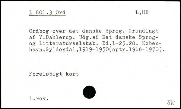Ordbog over det danske Sprog. Grundlagt af V.Dahlerup. Udg.af Det danske Sprog-og Litteraturselskab.