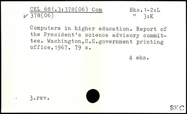 Computers in higher education. Report of the President's science advisory committee. Washington,U.S.government printing office,1967.