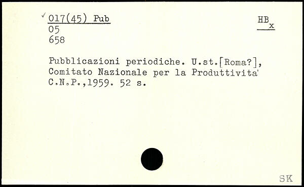 Puddlicazioni periodiche. U.st.[Roma?], Comitato Nazionale per la Produttivita“ C,NoP.,1959.