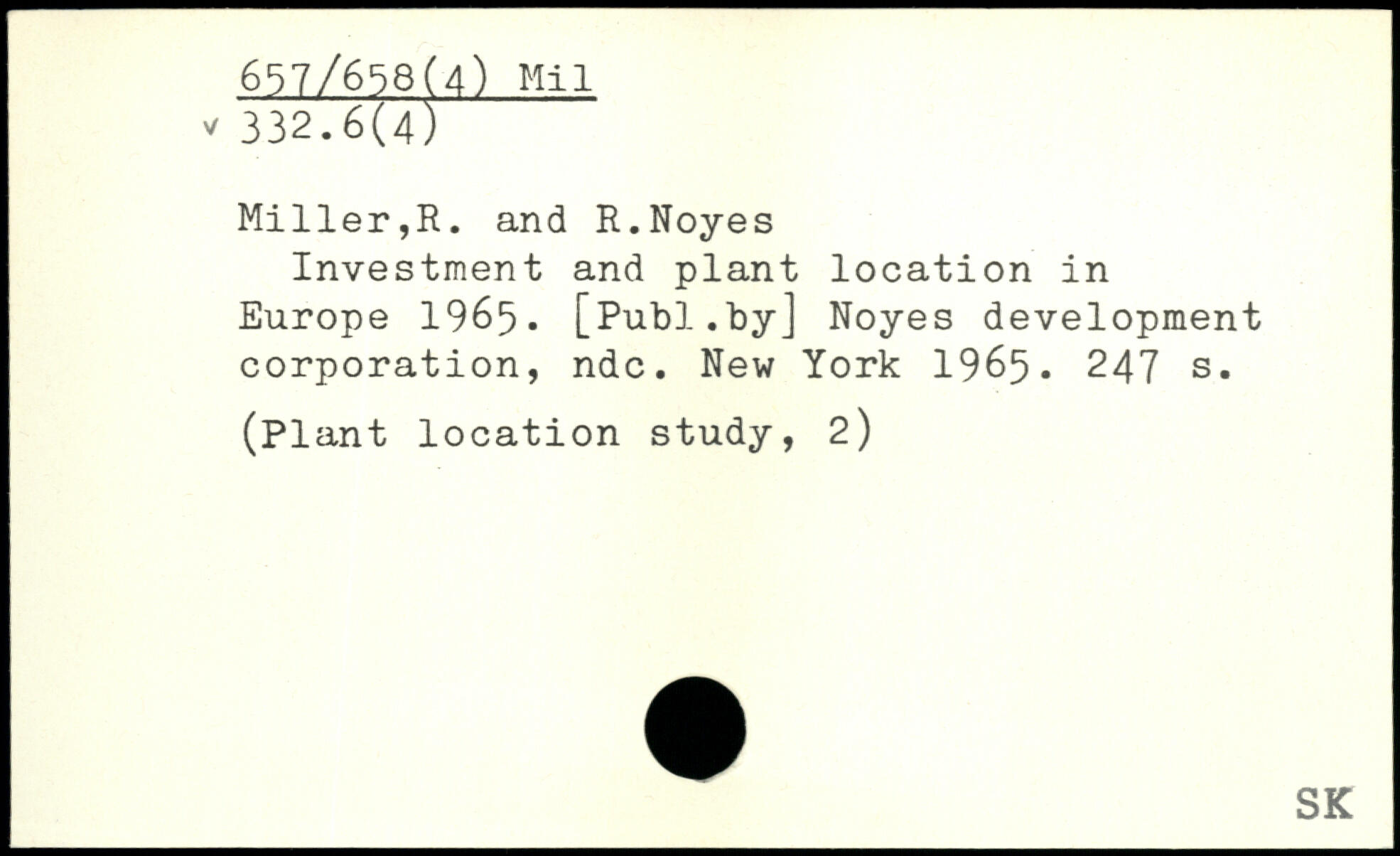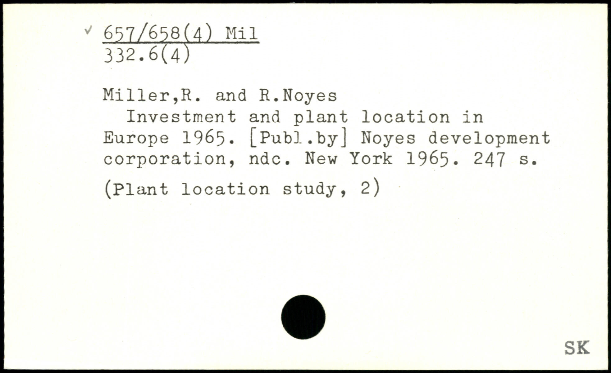 Investment and plant location in Europe 1965.