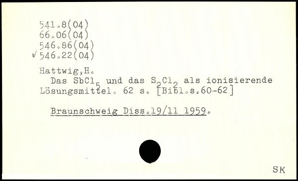 Das SbCl und das S?Clp als ionisierende Lösungsmittelo