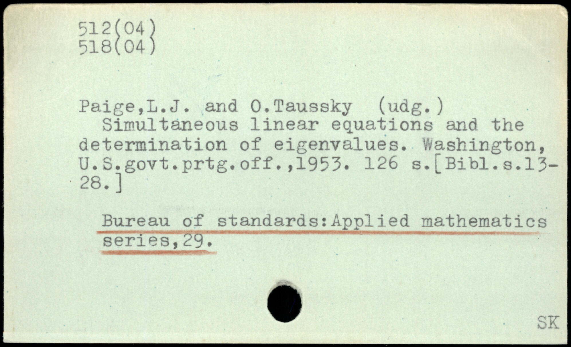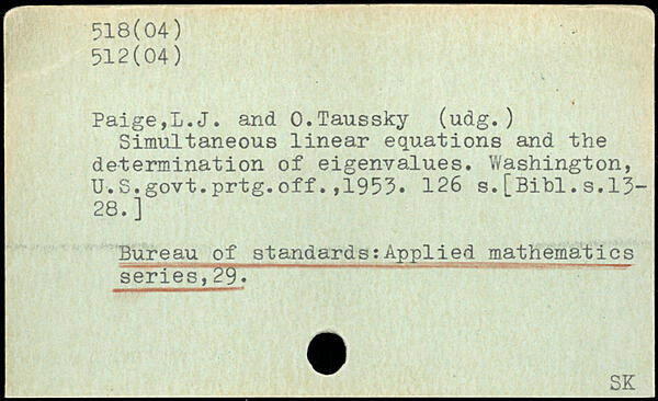 Simultaneous linear equations and the determination of eigenvalues. Washington, U.S.govt.prtg.off.,1953.