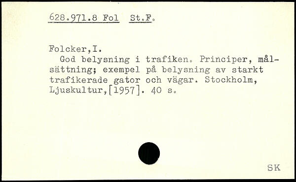God belysning i trafiken. Principer, målsättning; exempel på belysning av starkt trafikerade gator och vägar.