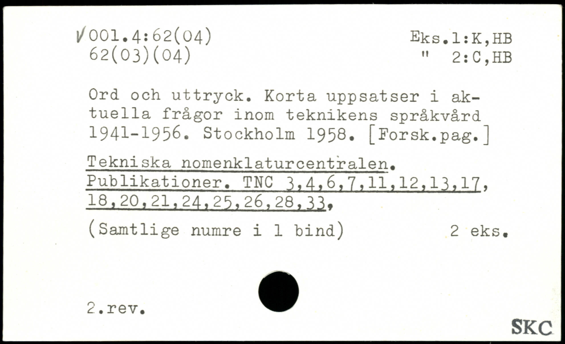 Ord och uttryck. Korta uppsatser i aktuella frågor inom teknikens språkvård 1941-1956.
