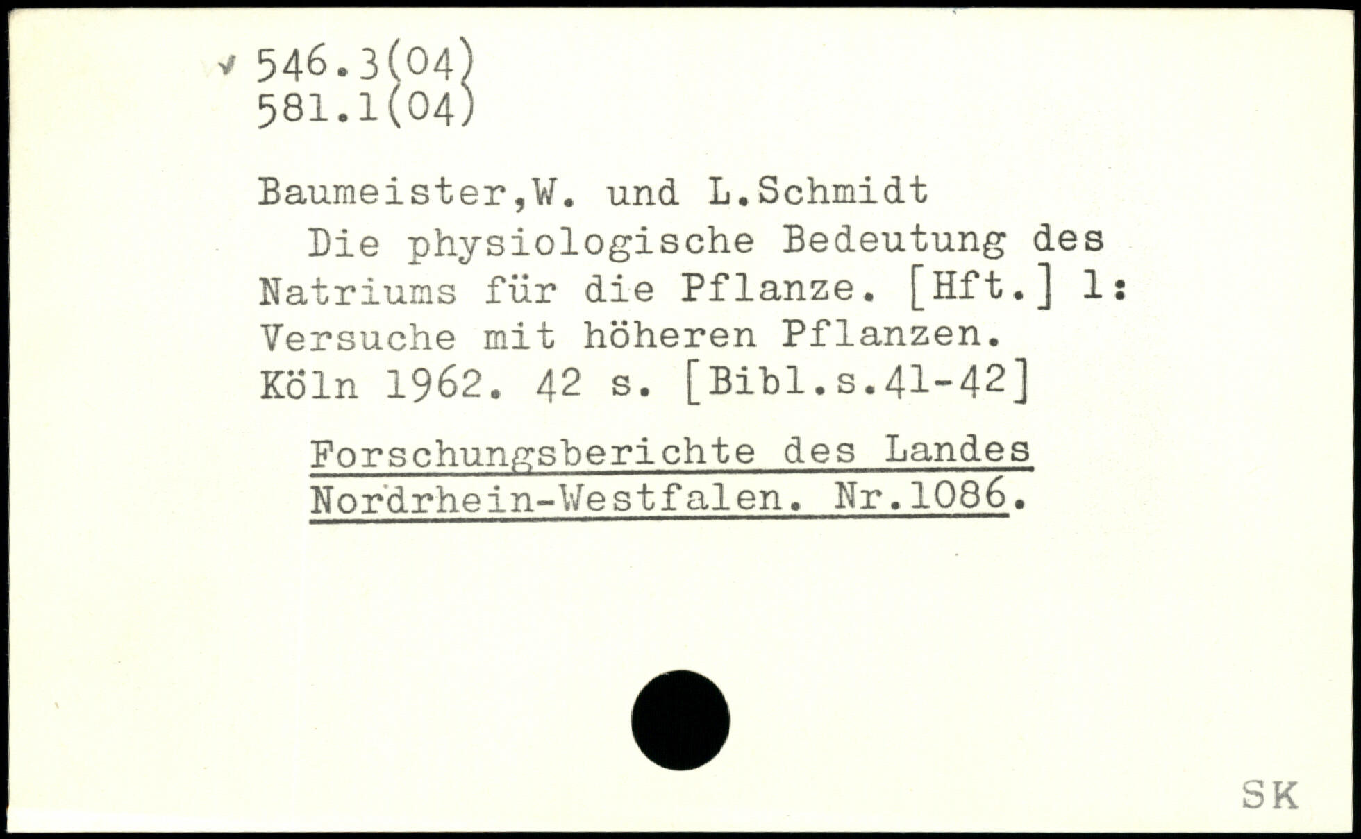 Die physiologische Bedeutung des Natriums für die Pflanze. [Hft.] 1: Versuche mit höheren Pflanzen.