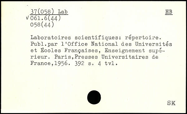 Laboratoires scientifiques: répertoire. Publ.par l'Office National des Universités et Écoles Françaises, Enseignement supérieur.