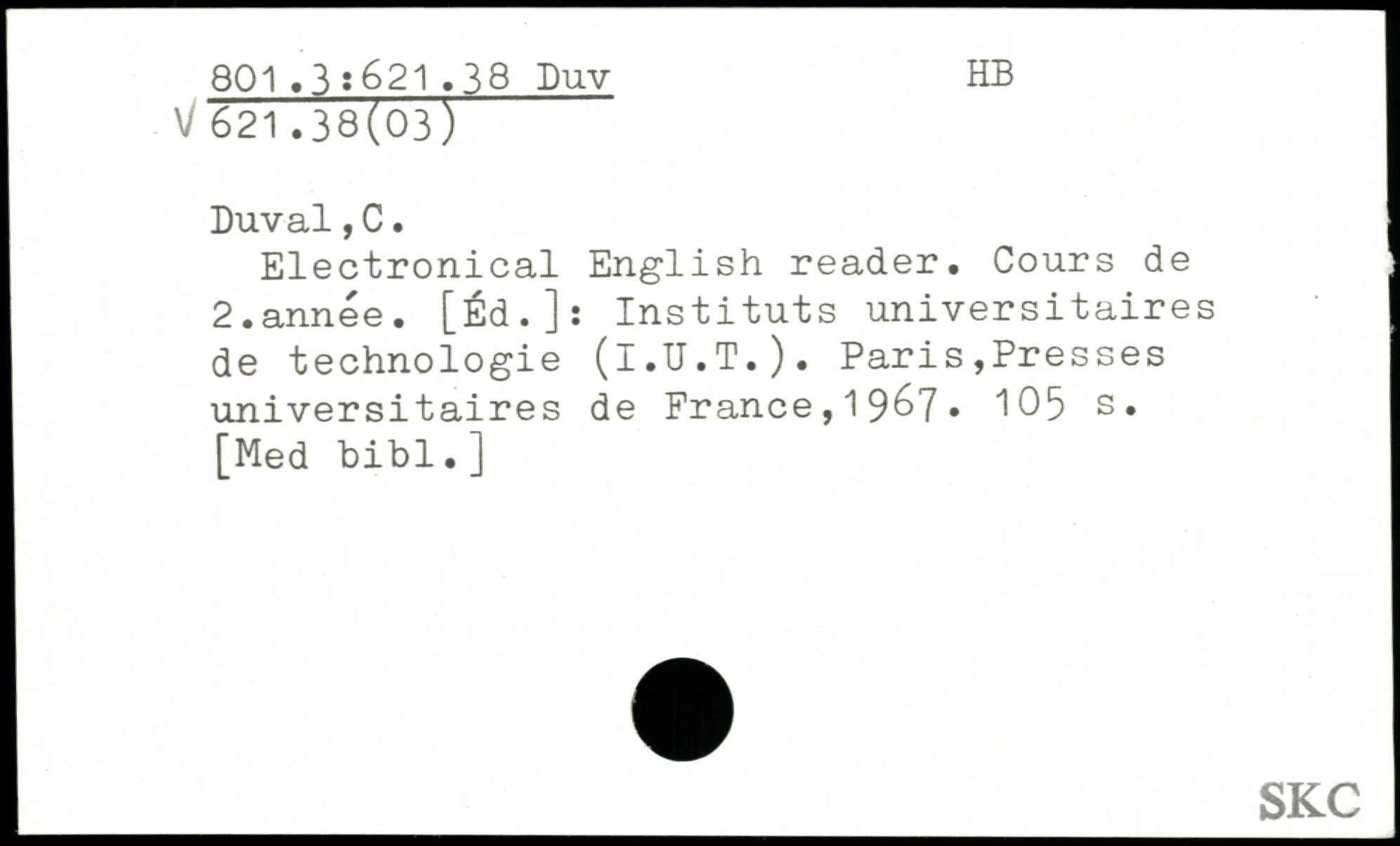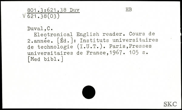 Electronical English reader. Cours de 2.année. [Éd.]: Instituts universitaires de technologie (I.U.T.). Paris,Presses universitaires de France,19^7.