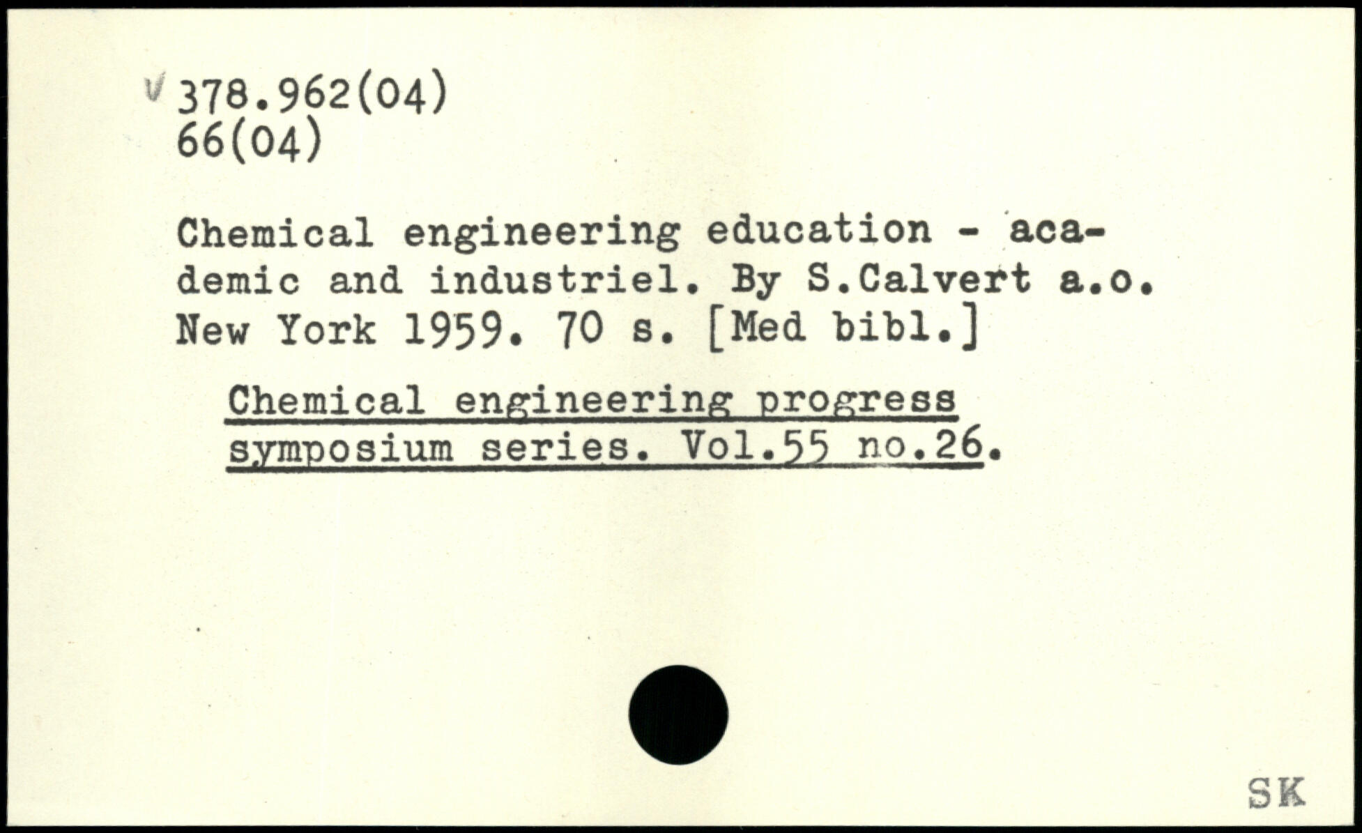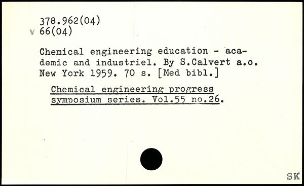 Chemical engineering education - academic and industriel. By S.Calvert a.o.