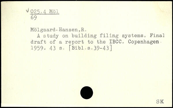 Molgaard- Hansen,Ru A study on building filing systems, Final draft of a report to the IBCC0 Copenhagen. 1959