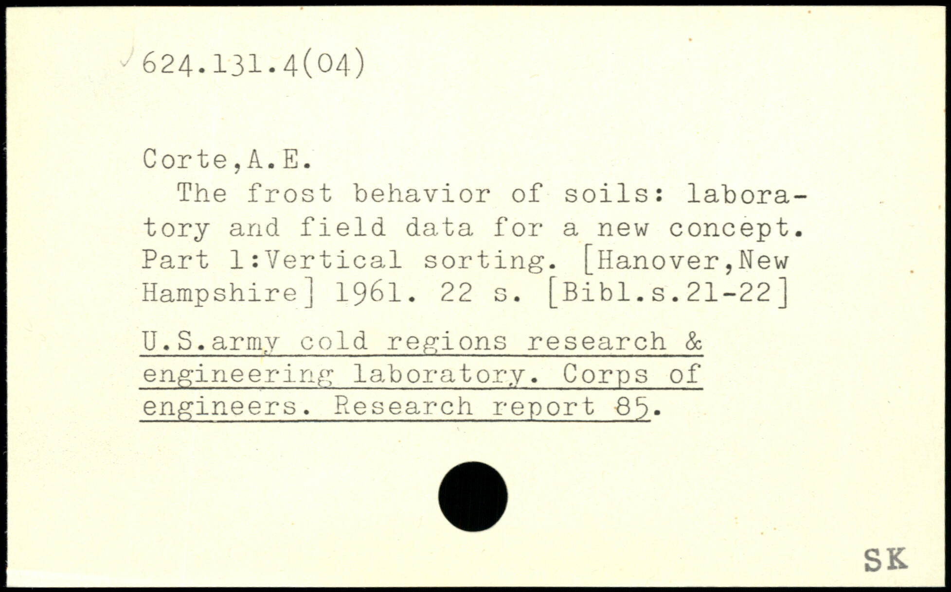 The frost behavior of soils: laboratory and field data for a new concept. Part l:Vertical sorting. [Hanover,New Hampshire] 1961.