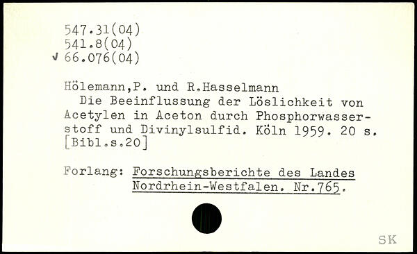 Hölemann,P. und R.Hasselmann i Hie Beeinflussung der Löslichkeit von Acetylen in Aceton durch Phosphorwasser- \ stoff und HivinylSulfid.