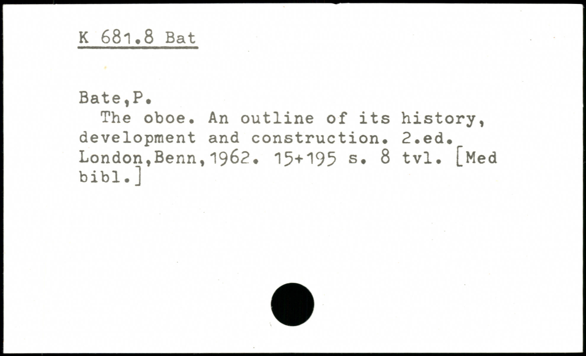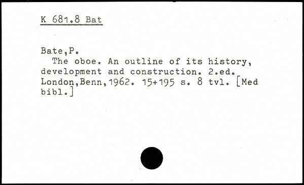 The oboe. An outline of its history, development and construction.