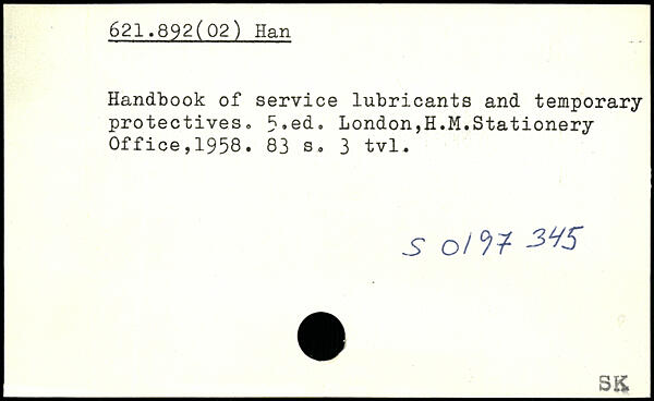 Handbook of service lubricants and temporary protectives.
