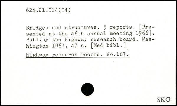 Bridges and structures. 5 reports. [Presented at the 46th annual meeting 1966].