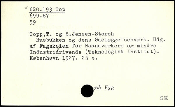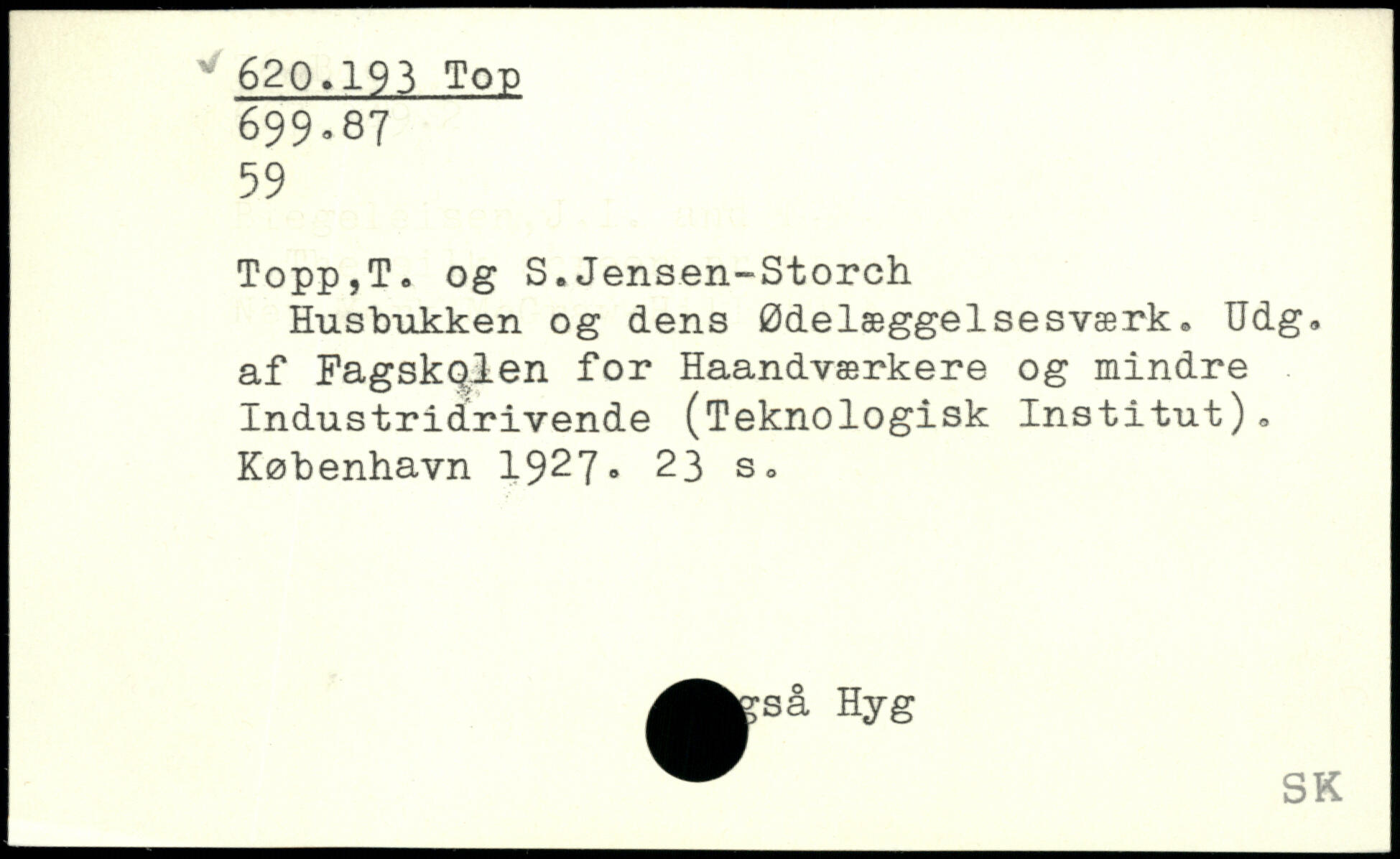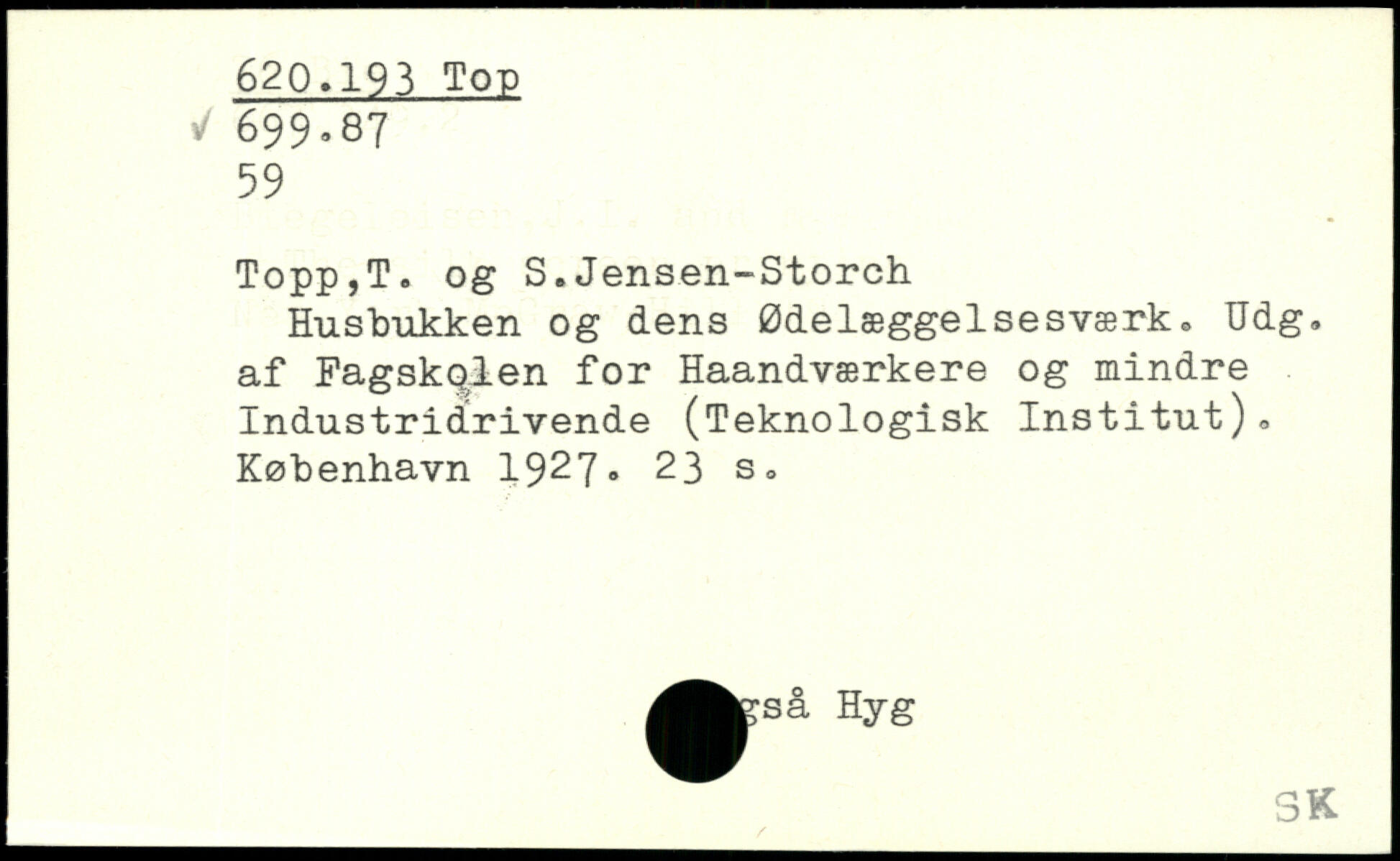 Husbukken og dens Ødelæggelsesværk. Udg. af Fagskqlen for Haandværkere og mindre Industridrivende (Teknologisk Institut)