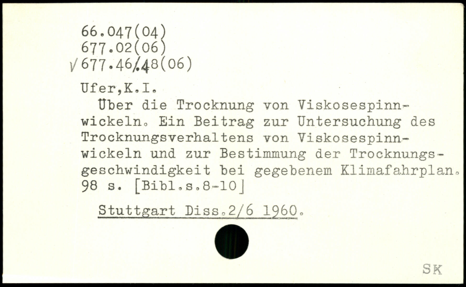 Uber die Trocknung von Viskosespinn-wickelno Ein Beitrag zur Untersuchung des Trocknungsverhaltens von Viskosespinnwickeln und zur Bestimmung der Trocknungs-geschwindigkeit hei gegebenem Klimafahrplan.