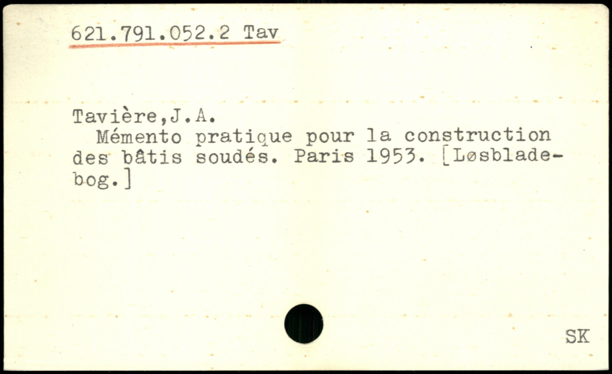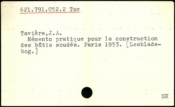 Tavière,J.A. Mémento pratique pour la construction des bâtis soudés.