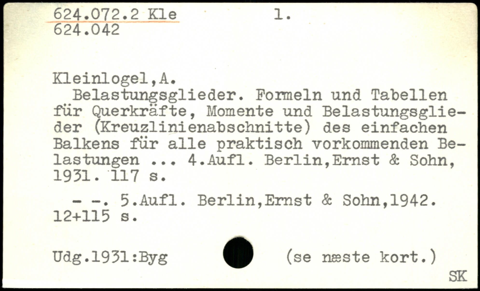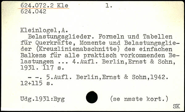 Belastungsglieder. Formeln und Tabellen für Querkräfte, Momente und Belastungsglie-der (Kreuzlinienabschnitte) des einfachen Balkens für alle praktisch vorkommenden Belastungen ...