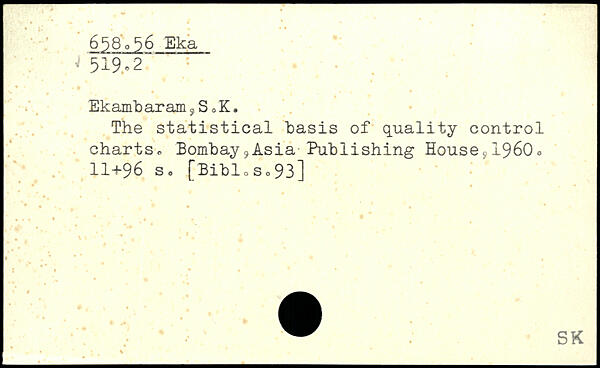 The statistical basis of quality control charts, Bombay9Asia Publishing House91960o