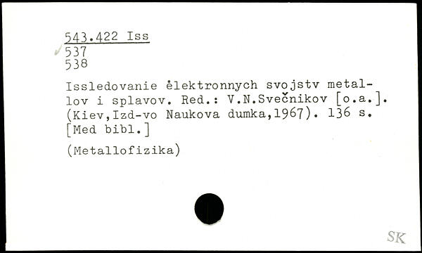 Issledovanie élektronnych svojstv metallov i splavov. Red.: V.N.Svecnikov [o.a.]. (Kiev,Izd-vo Naukova dumka,19^7).