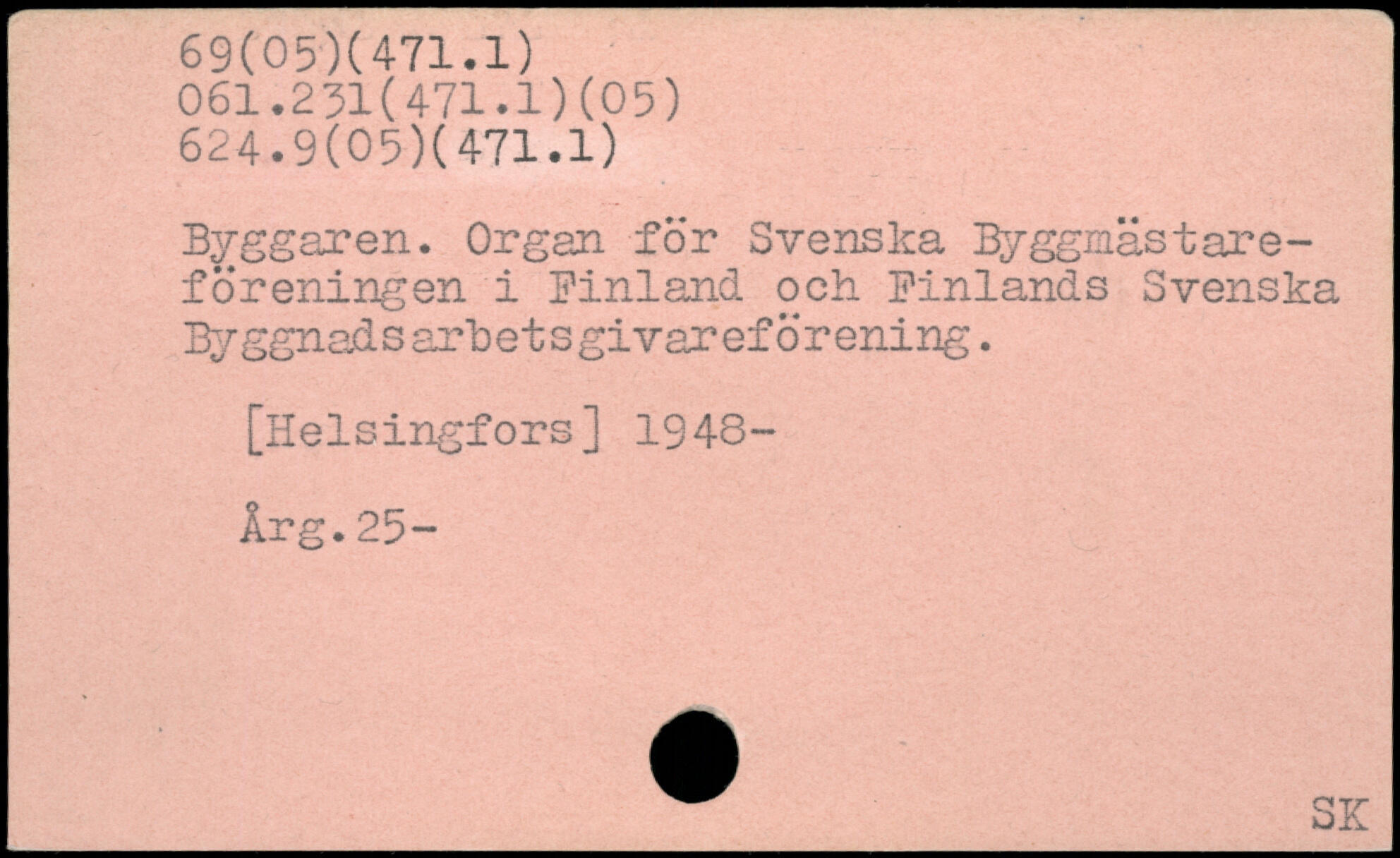 Byggaren. Organ for Svenska byggmästare-föreningen i Finland och Finlands Svenska byggnads arbets givareförening.