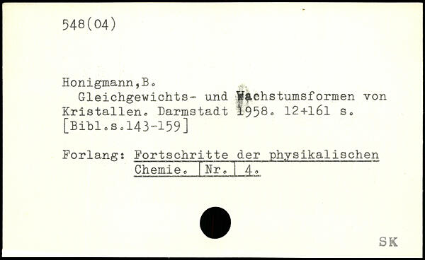 Gleichgewichts, und f^chstumsformen von Kristallen, Darmstadt 1958