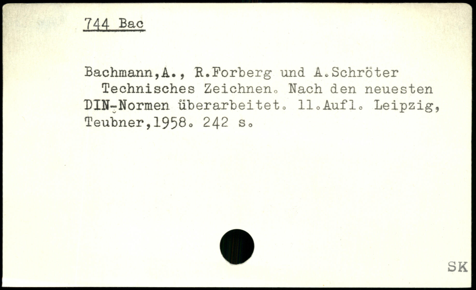 Bachmann,A., R.Forberg und AeSchröter ; Technisches Zeichnen,, Nach den neuesten DIN-Normen überarbeitet0 lloAuflo Leipzig, ! Teubner,1958o