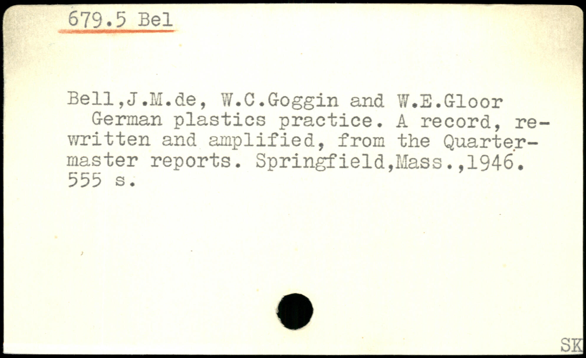 Bell, J.M.de, W.C.Goggin and W.E.Gloor German plastics practice. A record, rewritten and amplified, from the Quartermaster reports.