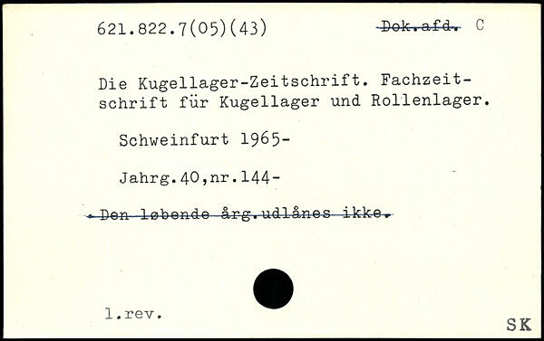 Die Kugellager-Zeitschrift. Fachzeitschrift für Kugellager und Rollenlager. Schweinfurt 1965- Jahrg.40,nr.144- ,■ Den løbend-e—årg. udlånes—ikk-e-r
