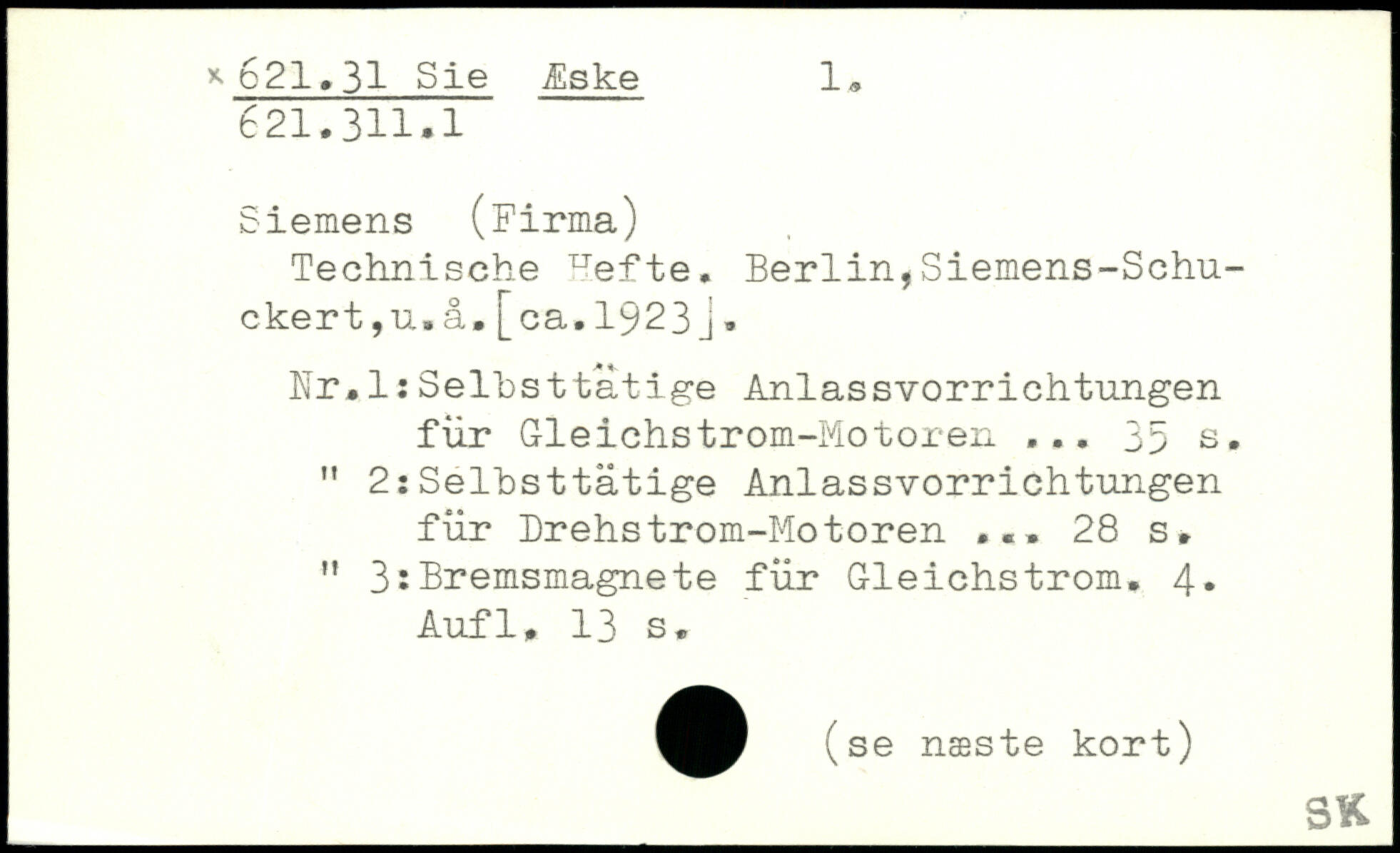 Technische Hefte. Berlin,Siemens-Schu-ckert,n.å.[ca.1923j. Nr.1:Seihsttätige Anlassvorrichtungen für Gleichstrom-Motoren ...