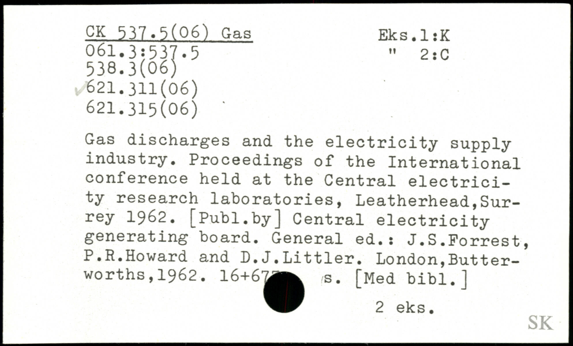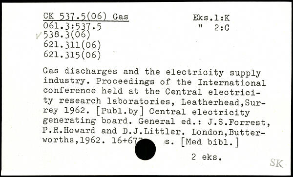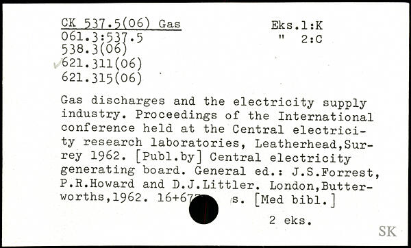 Gas discharges and the electricity supply industry. Proceedings of the International frfsrence held at the Central electricity research laboratories, Leatherhead,Sur-rey 1962.