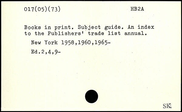 Books in print. Subject guide. An index to the Publishers' trade list annual.