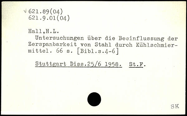 Untersuchungen über die Beeinflussung der Zerspanbarkeit von Stahl durch KühlSchmiermittel.