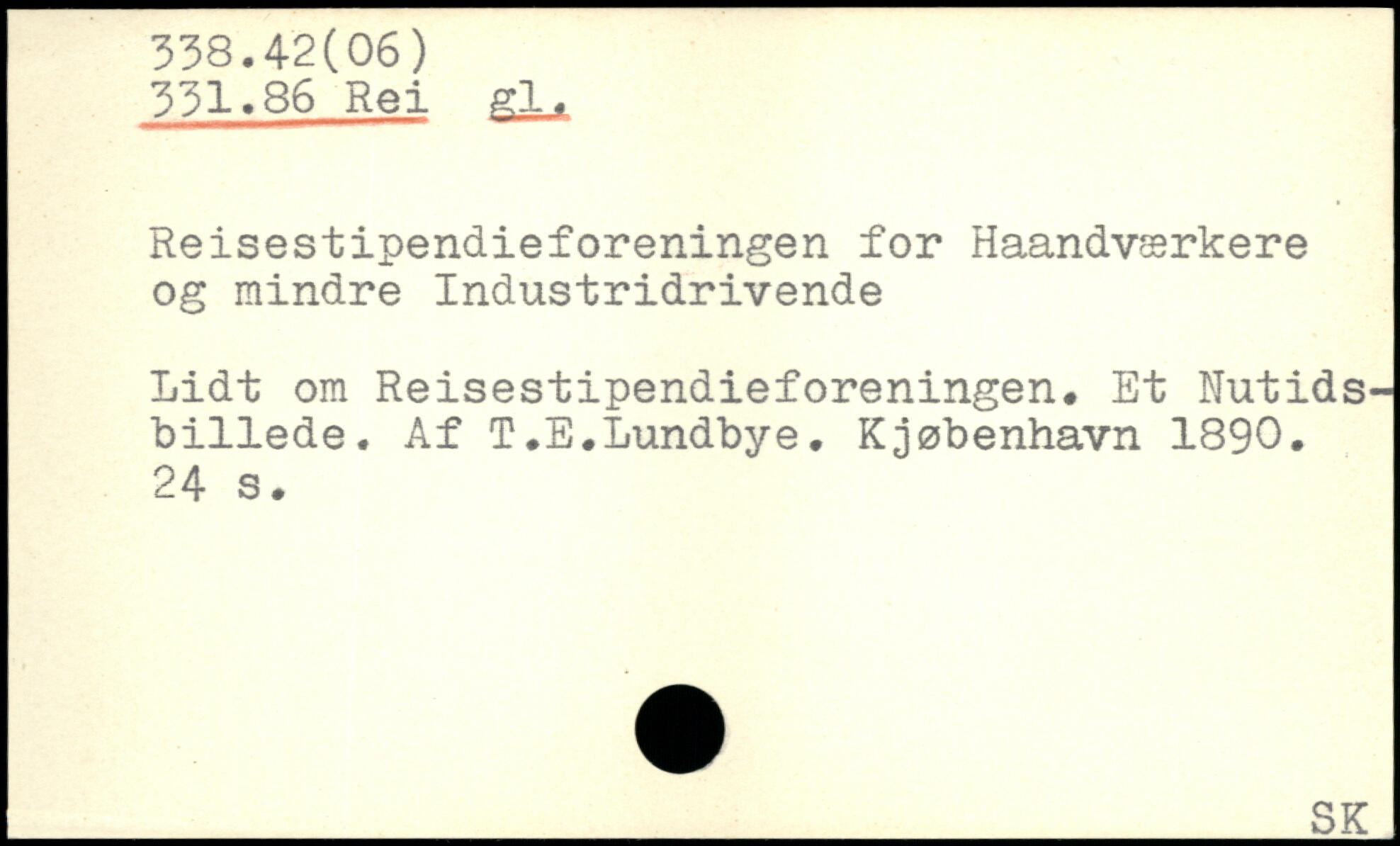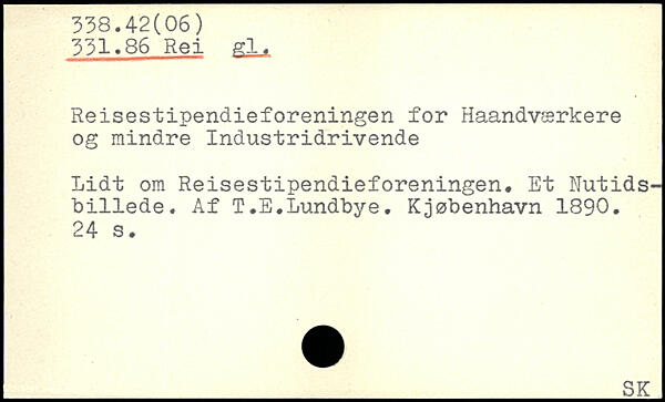 Reisestipendieforeningen for Haandværkere og mindre Industridrivende Lidt om Reisestipendieforeningen. Et Nutidsbillede. Af T.E.Lundbye. Kjøbenhavn 1890.