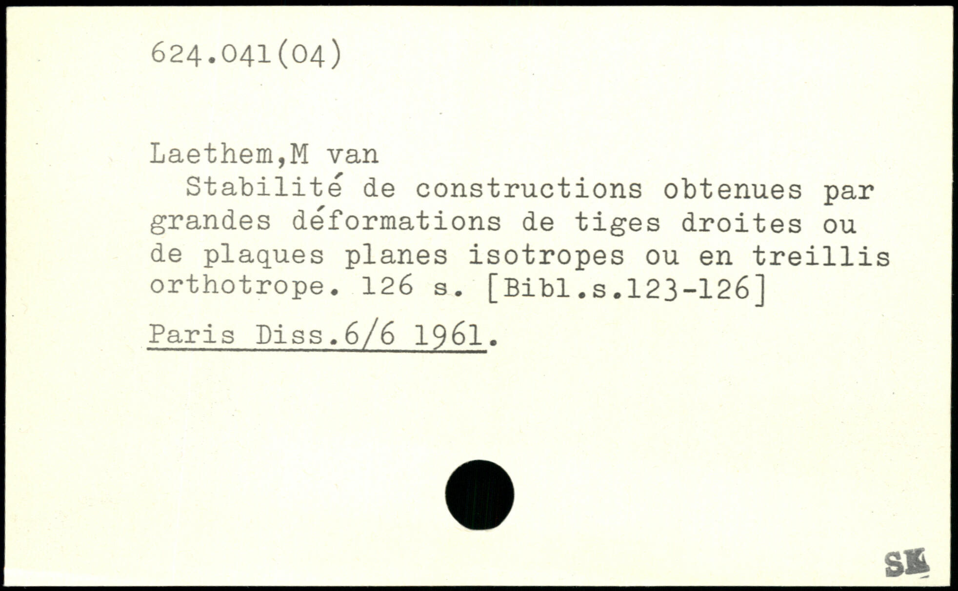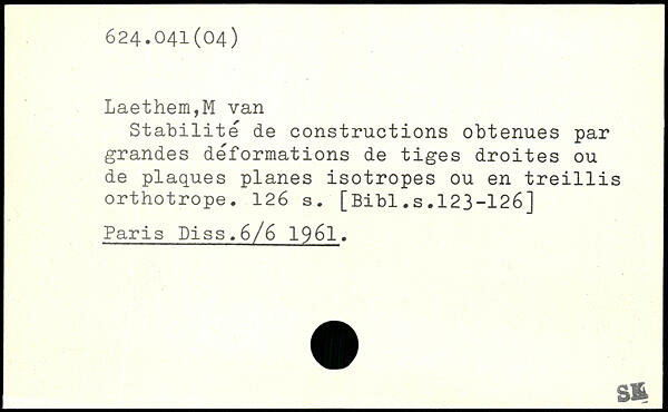 Laethem,M van Stabilité de constructions obtenues par grandes deformations de tiges droites ou de plaques planes isotropes ou en tre1111s orthotrope.