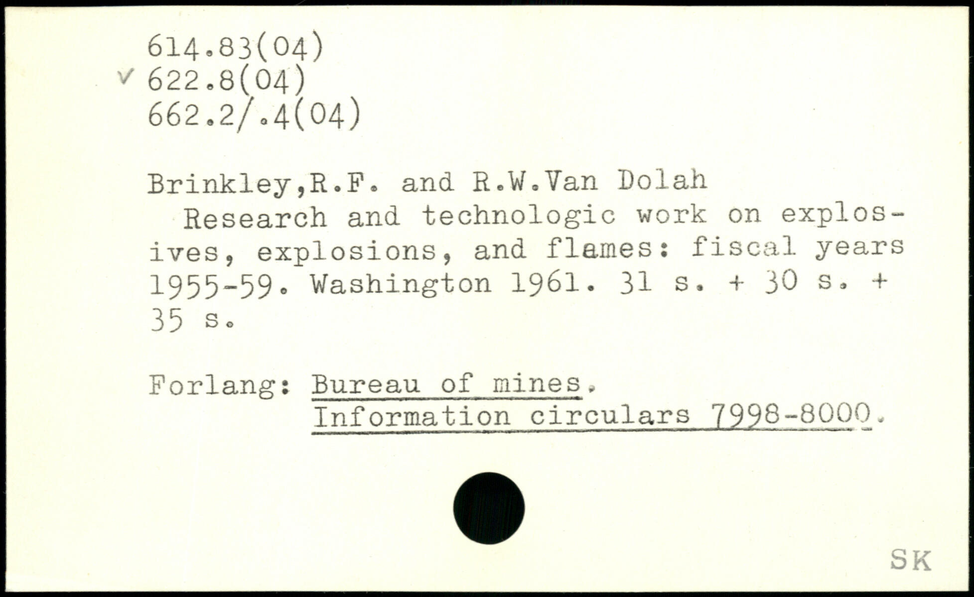 Brinkley,R.F. and R.W.Van Dolah Research and technologic work on explosives, explosions, and flames: fiscal years 1955-59.