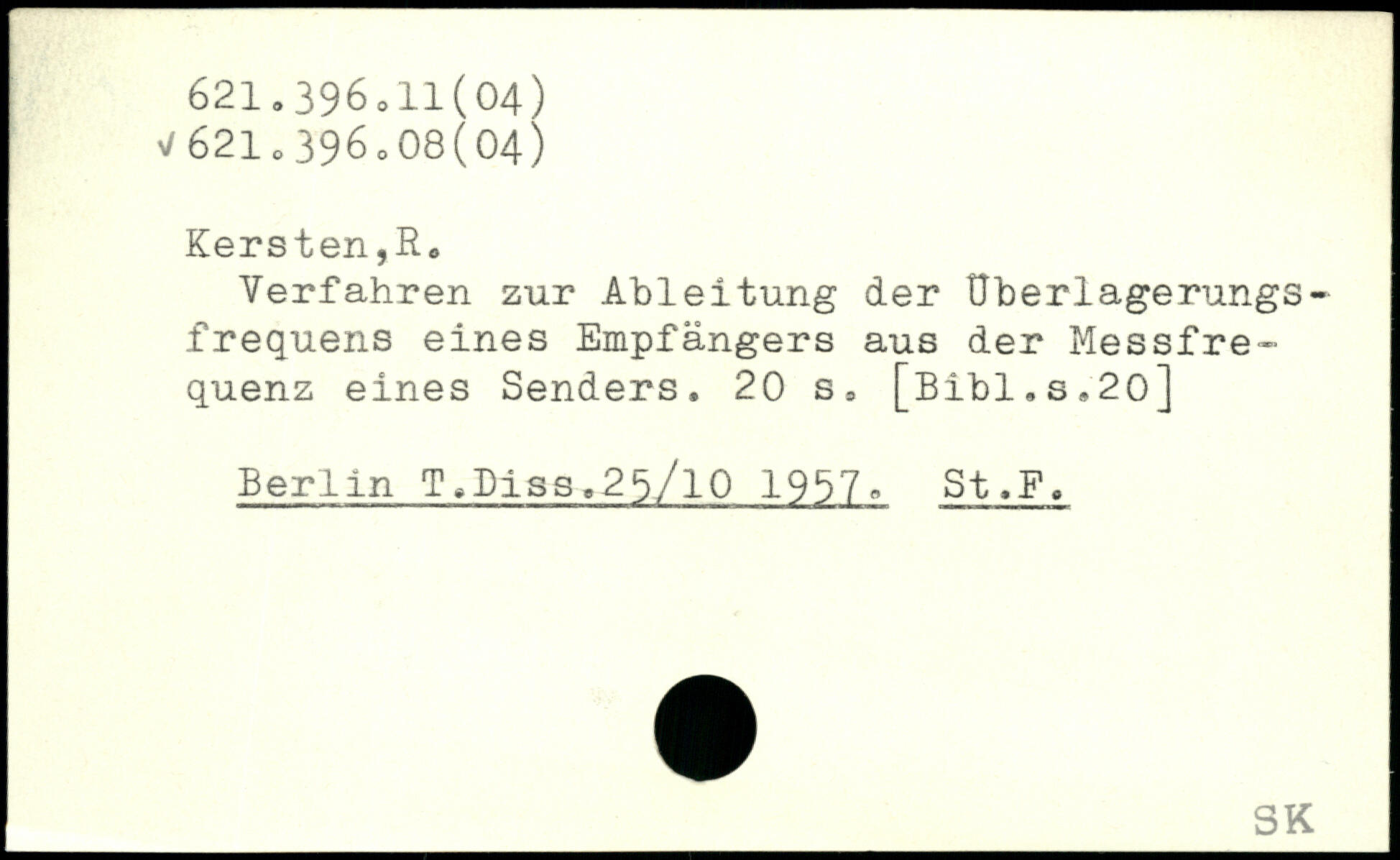 Verfahren zur Ableitung der Uberlagerungs, frequens eines Empfängers aus der Messfrequenz eines Senders.