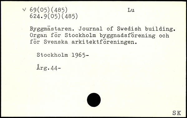 Byggmästaren. Journal of Swedish building. Organ för Stockholm byggnadsförening och för Svenska arkitektföreningen.