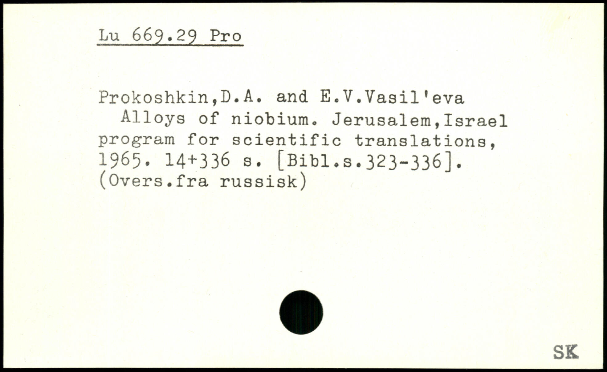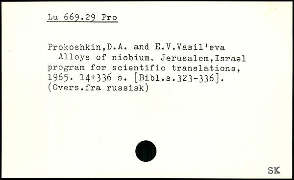 Prokoshkin,D.A. and E.V.Vasil'eva Alloys of niobium. Jerusalem,Israel program for scientific translations, 1965