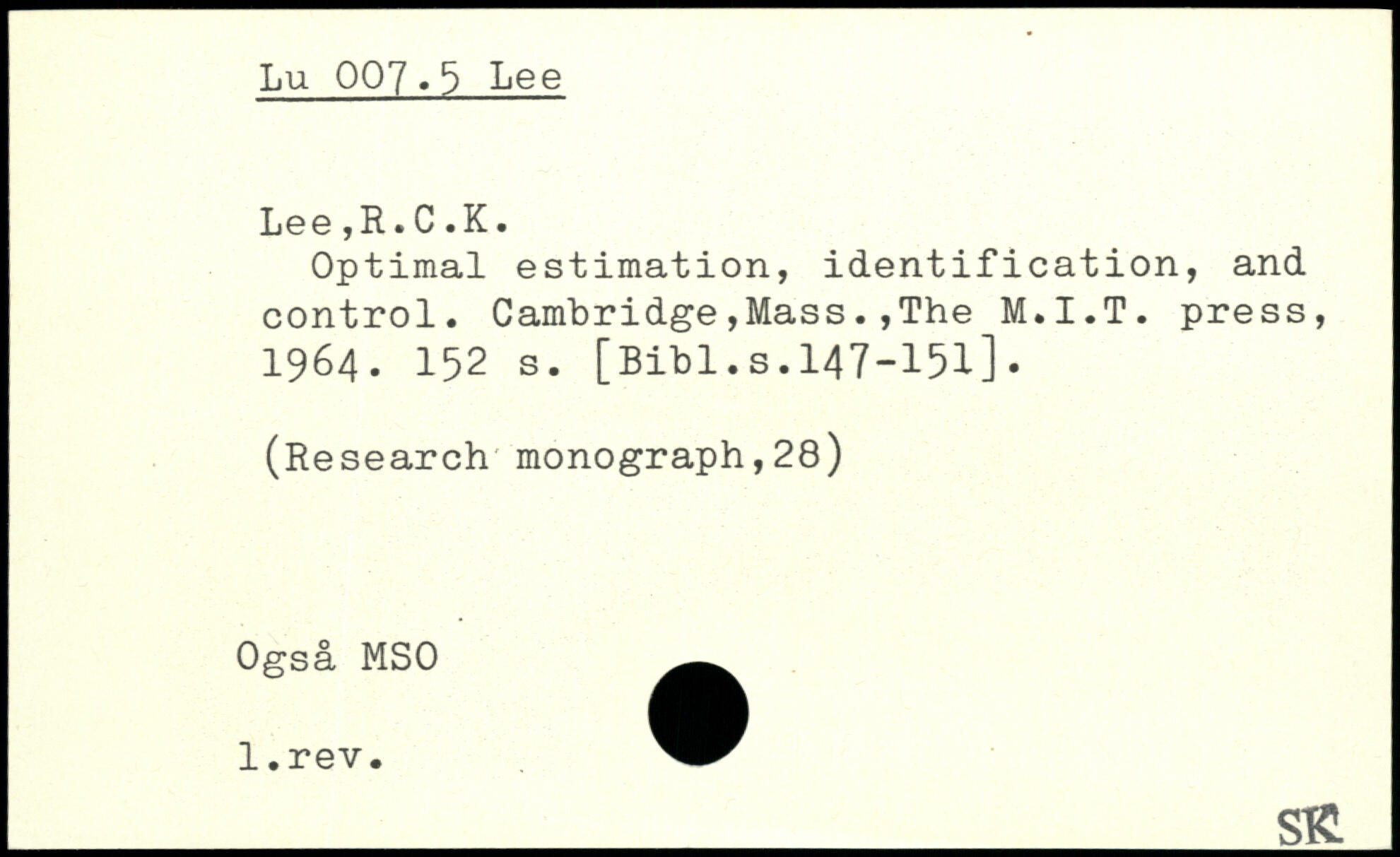 Optimal estimation, identification, and control. Cambridge,Mass.,The M.I.T. press, 1964.