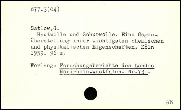 Hautwolle und Schurwolle. Eine Gegenüberstellung ihrer wichtigsten chemischen und physikalischen Eigenschaften.