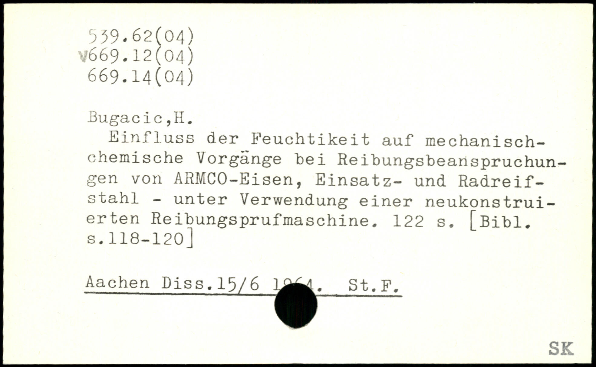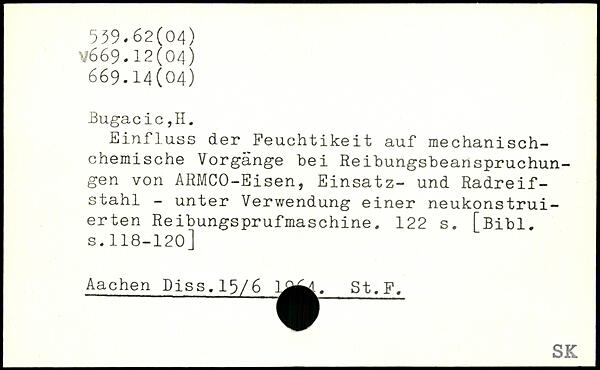Einfluss der Feuchtikeit auf mechanisch-chemische Vorgänge bei Reibungsbeanspruchungen von ÄRMCO-Eisen, Einsatz- und Radreifstahl - unter Verwendung einer neukonstruierten Reibungsprufmaschine.