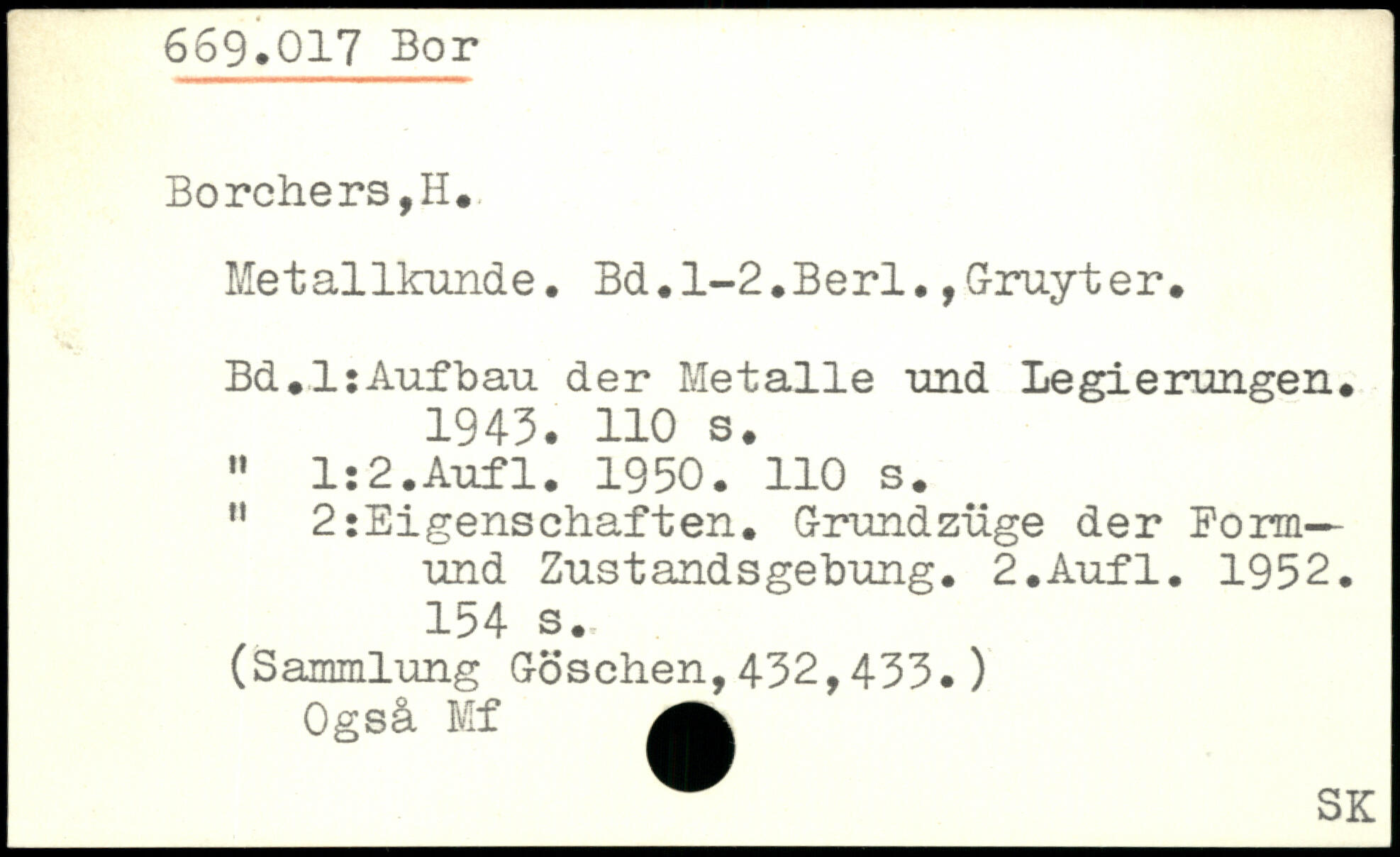 Metallkunde. Bd.l~2.Berl. ,Gruyter. Bd.lsAufbau der Metalle und Legierungen. 1943.