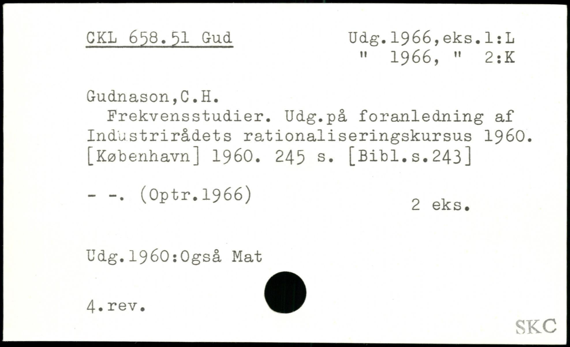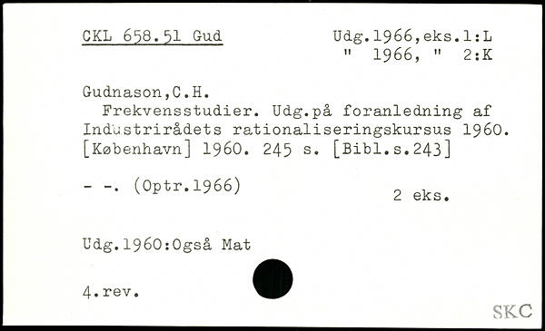 " 1966, " 2:K Gudnason,C.H. Frekvensstudier. Udg.på foranledning af Industrirådets rationaliseringskursus 1960.