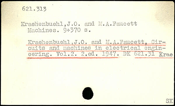 Kraehenbuehl. J.0. and U. A.hsuçOix-cuits and machines in electrical engineering. Vol.